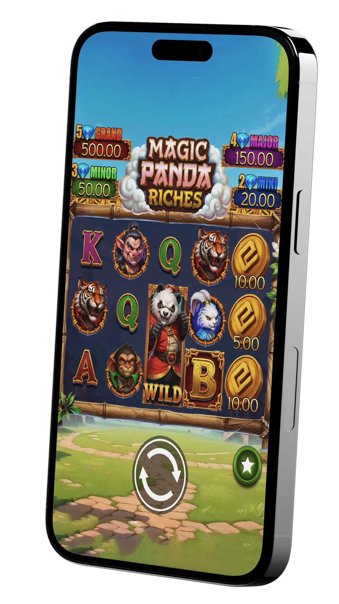 Magic Panda Riches is a 5x3 slot with 20 paylines. Stacked wilds boost wins in the base game, while 6+ money or